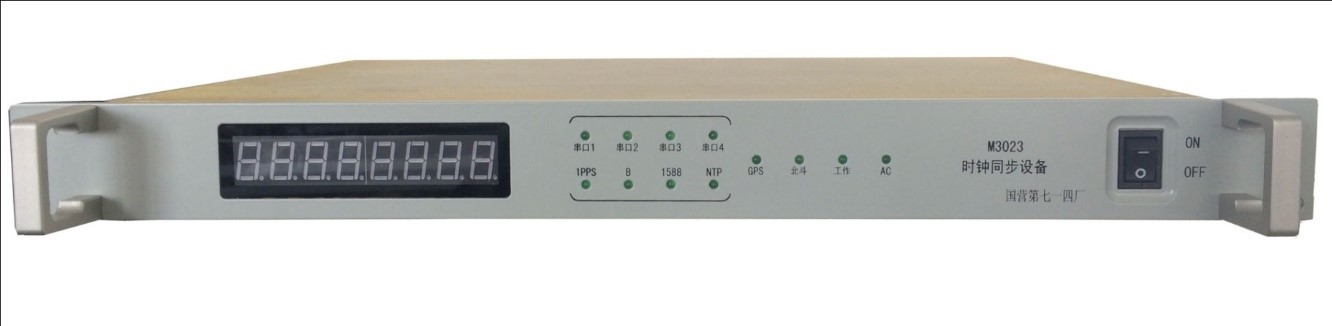 M3023型时钟同步设备是一款高精度、高可靠通用同步时钟产品。该产品接收北斗、GPS等外部时间信息,通过系统内部高精度的恒温晶振对时间进行同步保持(对秒),再以串口、网口方式对外分发时间信息。接口丰富,扩展性强,按军工产品要求研制和制造,质量可靠,并进行三防处理,适应盐雾、潮湿等恶劣环境工作。该设备为各类通信、计算机及信息服务系统等提供精确的时钟同步信号