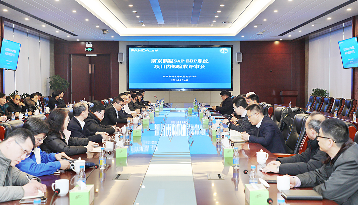 On the afternoon of January 6th, Panda SAP ERP system project internal acceptance review meeting was held in the Panda Equipment Park. Company leaders Xia Dechuan, Li Changjiang, Dong Zhiming, Guo Qing, Hu Huichun, Hu Dali, Wang Dongdong, and the general manager of Shanghai Jingtong Information Technology Co., Ltd. Shao Ruoming attended the meeting. The leaders of company departments and industrial companies, project leaders of Shanghai Jingtong SAP ERP system, etc. participated the meeting. The deputy general manager of Panda Mr. Shao Bo, presided over the meeting.